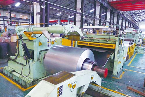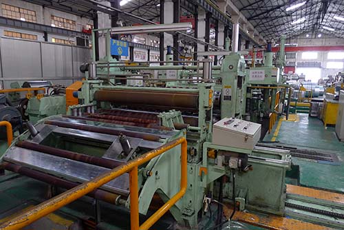 生產線主要有:上卷小車,開卷機,校平機,料頭剪床,前活套,側導位機構,分條主機,廢邊卷取機,后活套,板式張力機,皮帶式張力機,卷取機,輔助支承臂,卸卷小車,液壓氣動系統,電器控制系統等組成。